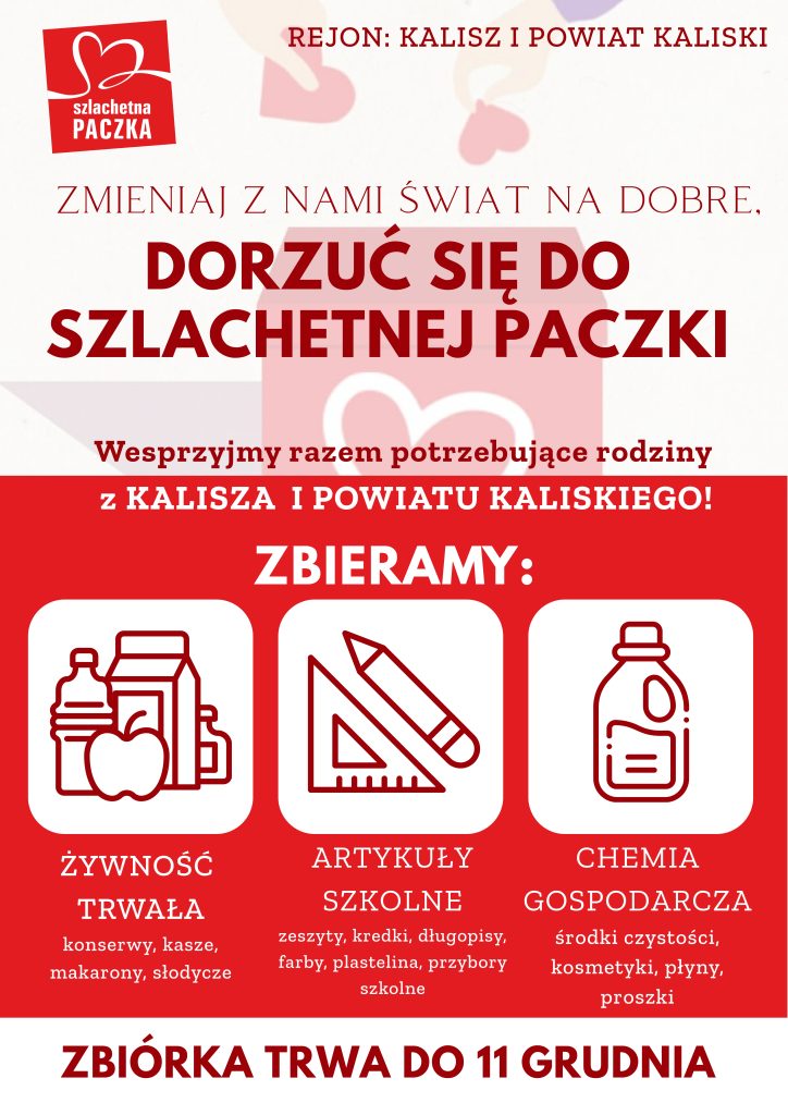 Start Aktualności Dorzuć się do Szlachetnej Paczki! Aktualności Informacje Dorzuć się do Szlachetnej Paczki! 08/12/2025 Zachęcamy wszystkich mieszkańców do włączenia się w akcję Szlachetna Paczka 2025.W holu Urzędu Gminy w Żelazkowie ustawiony będzie oznakowany karton, do którego można wkładać przekazywane artykuły.Zbiórka trwa do 11 grudnia 2025r.Pomaganie to wielka rzecz! Post navigation Poprzedni wpis Informacja o XVIII sesji Rady Gminy Żelazków IX kadencji Następny wpis Aglomeracyjna Senioriada Międzypokoleniowa