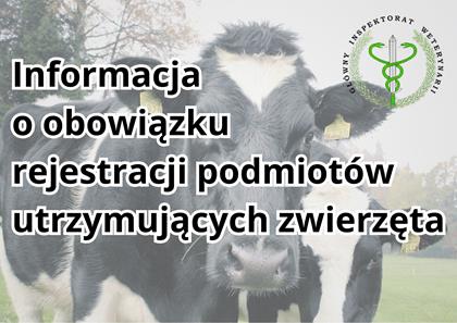 Powiatowy Lekarz Weterynarii w Kaliszu, informuje o obowiązku rejestracji podmiotów i zakładów utrzymujących zwierzęta gospodarskie, w przypadku wprowadzania na rynek zwierząt lub produktów pochodzących od tych zwierząt, tj. gospodarstw utrzymujących bydło, świnie, kozy, owce oraz inne kopytne, a także pszczoły oraz drób, które prowadzą sprzedaż: