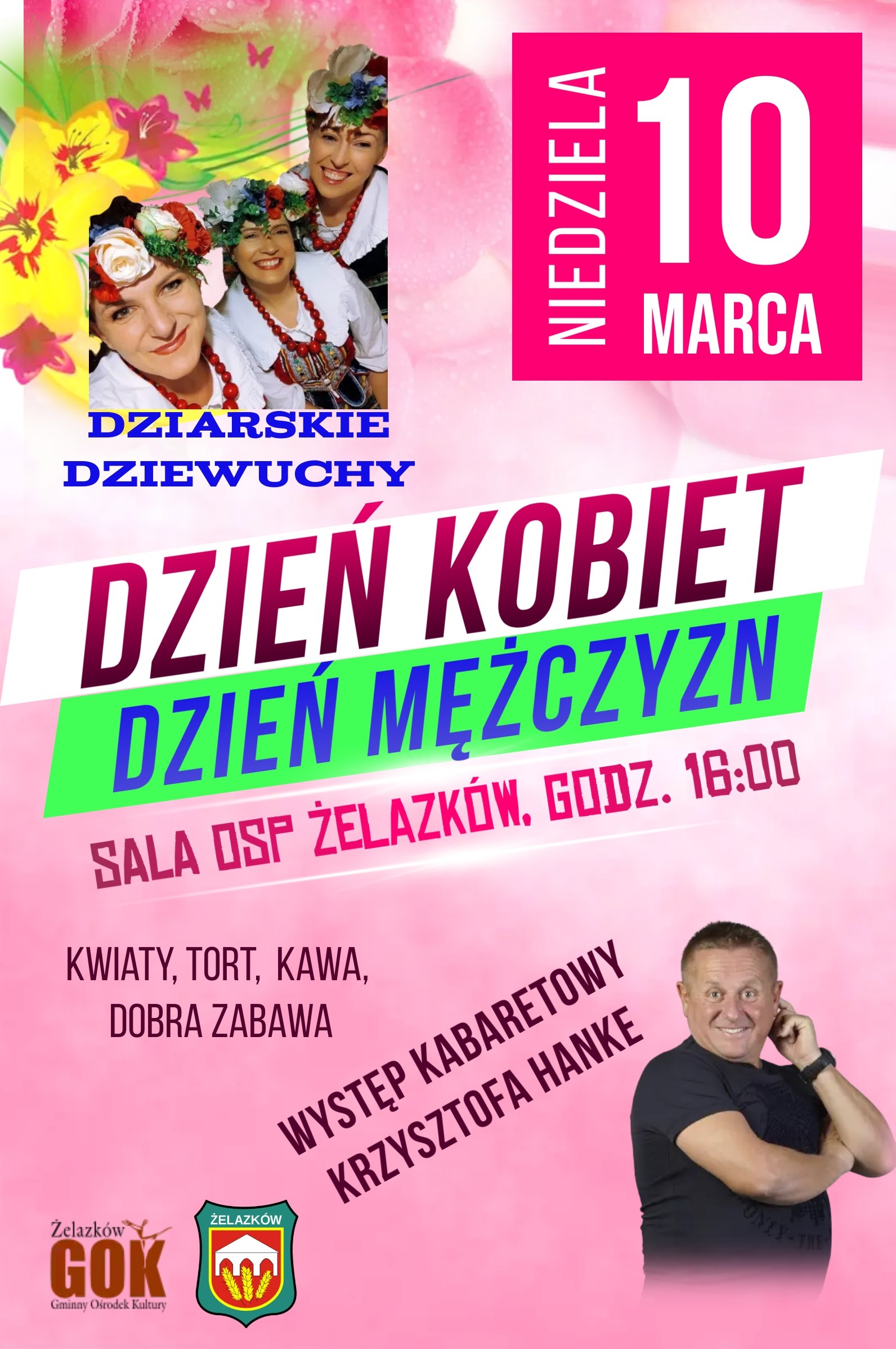 Start Aktualności Dzień Kobiet i Dzień Mężczyzn w Żelazkowie! Aktualności Informacje Wydarzenia Dzień Kobiet i Dzień Mężczyzn w Żelazkowie! 03/03/2024 Szanowni Państwo, Serdecznie zapraszamy na obchody Dnia Kobiet oraz Dnia Mężczyzn w Żelazkowie, który odbędzie się: 10 marca o godzinie 16.00 na Sali OSP Żelazków Gminny Ośrodek Kultury w Żelazkowie przygotował dla Państwa mnóstwo atrakcji! Występ “Dziarskich Dziewuch”, Występ kabaretowy Krzysztofa Hanke, Słodki poczęstunek, gorąca kawa, oraz wiele innych! Nie może Was zabraknąć! Post navigation Poprzedni wpis Budowa Szkoły Podstawowej i przebudowa Przedszkola z adaptacją na Żłobek w m. Żelazków w ramach Rządowego Funduszu Polski Ład Następny wpis Wymiana wiat przystankowych przy Drodze Krajowej 25